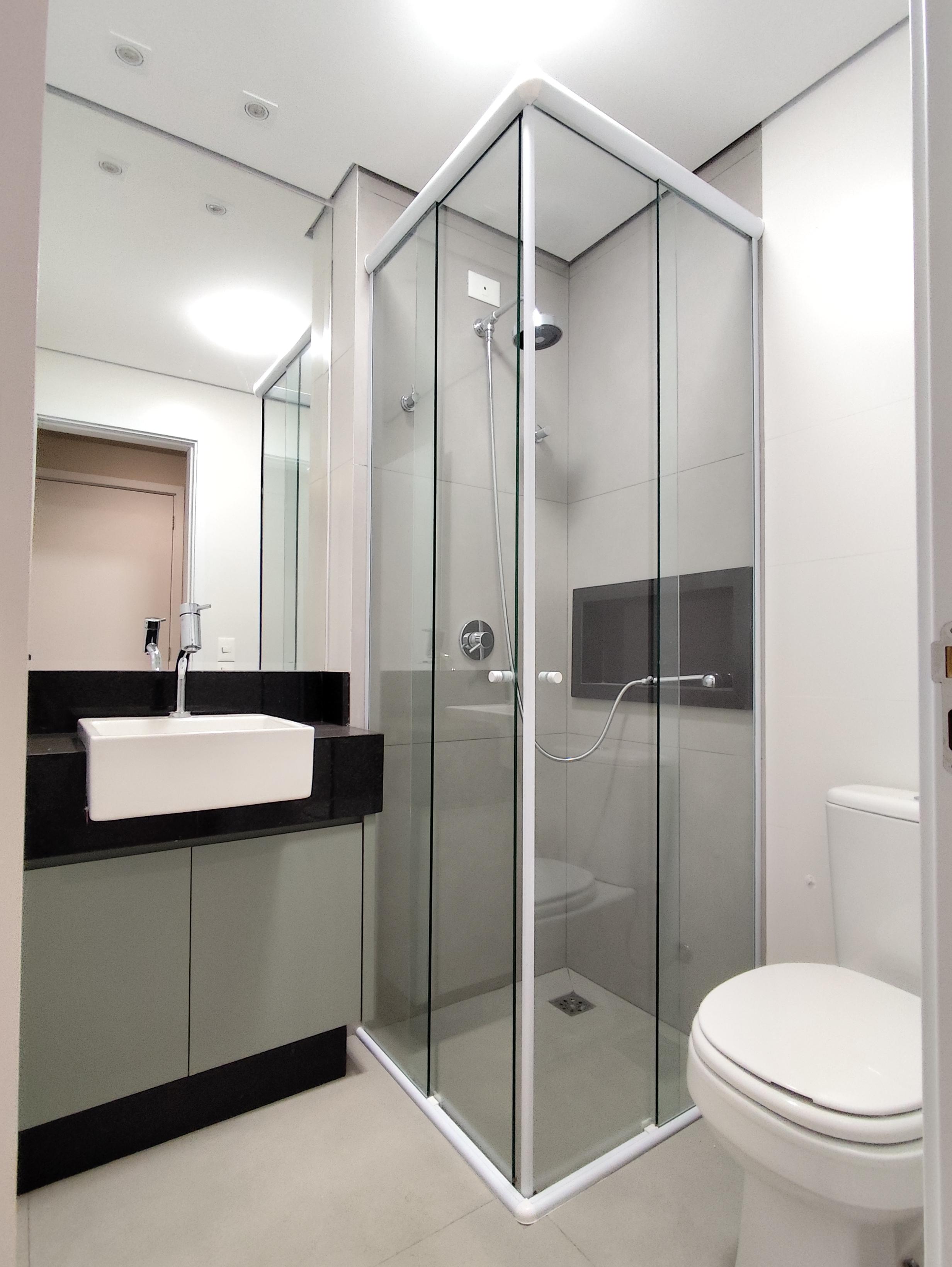 Box dos banheiros em vidro temperado.