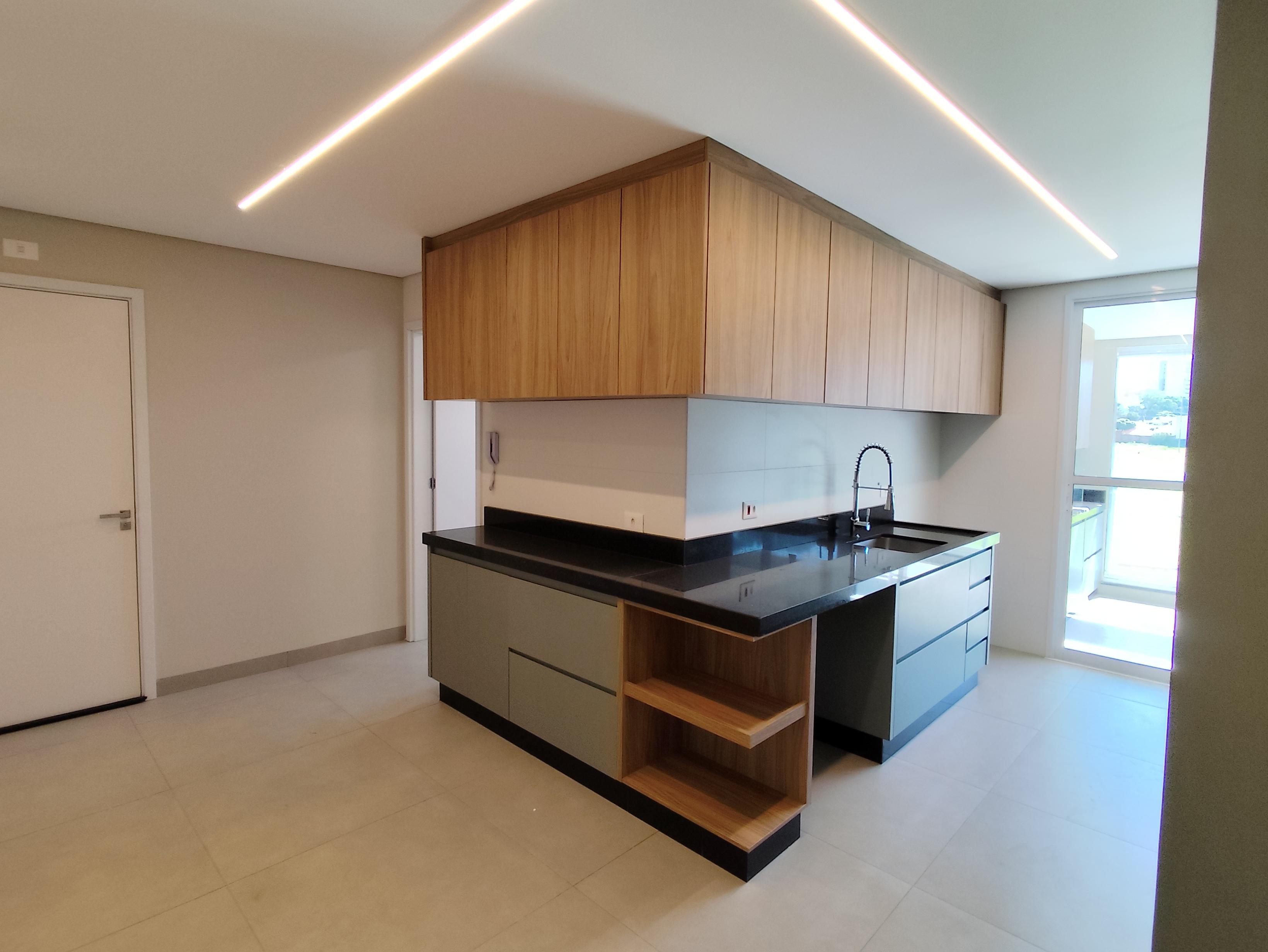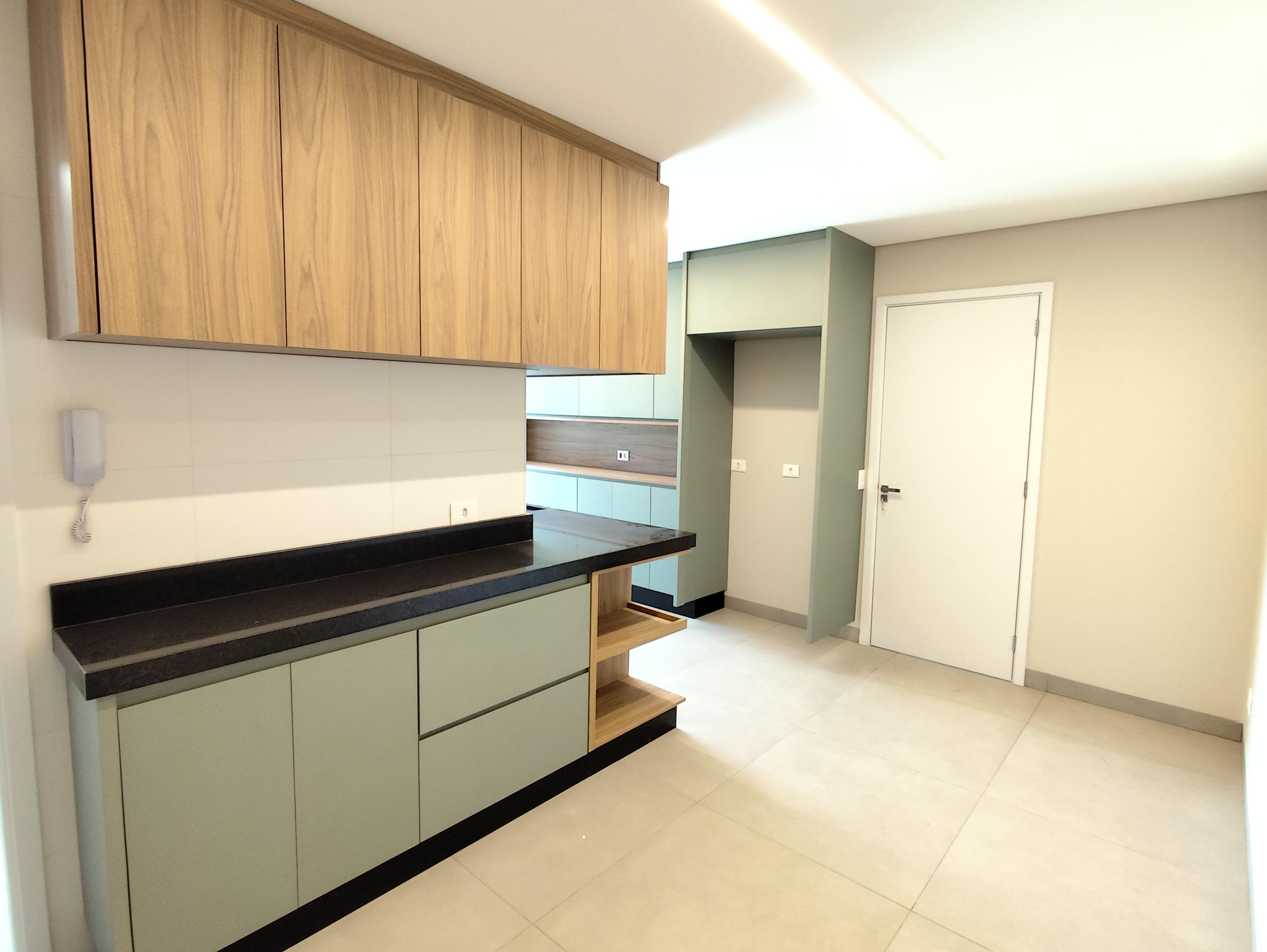 Cozinha ampla com armários.
