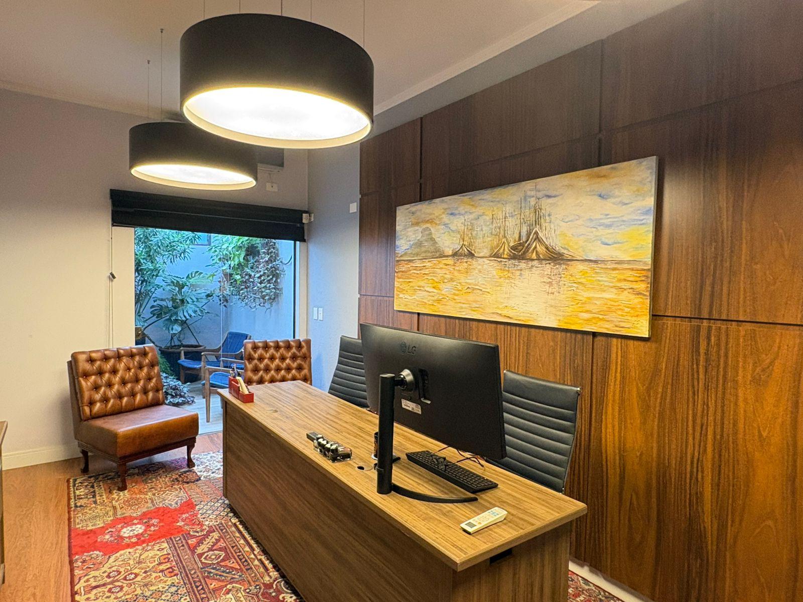 Imóvel comercial, ideal para empresas que buscam estrutura, conforto e funcionalidade. Conta com recepção, sala de apoio com arquivo, lavabo, 02 salas privativas com banheiro e 04 salas adicionais, sendo 03 para estações de trabalho e 01 sala de reunião. Possui 04 banheiros, sala com acessibilidade, além de 03 salas extras. Todos os ambientes possuem ar-condicionado. Conta ainda com energia fotovoltaica, lavanderia, cozinha com armários, garagem e amplo terreno com espaço para estacionamento.