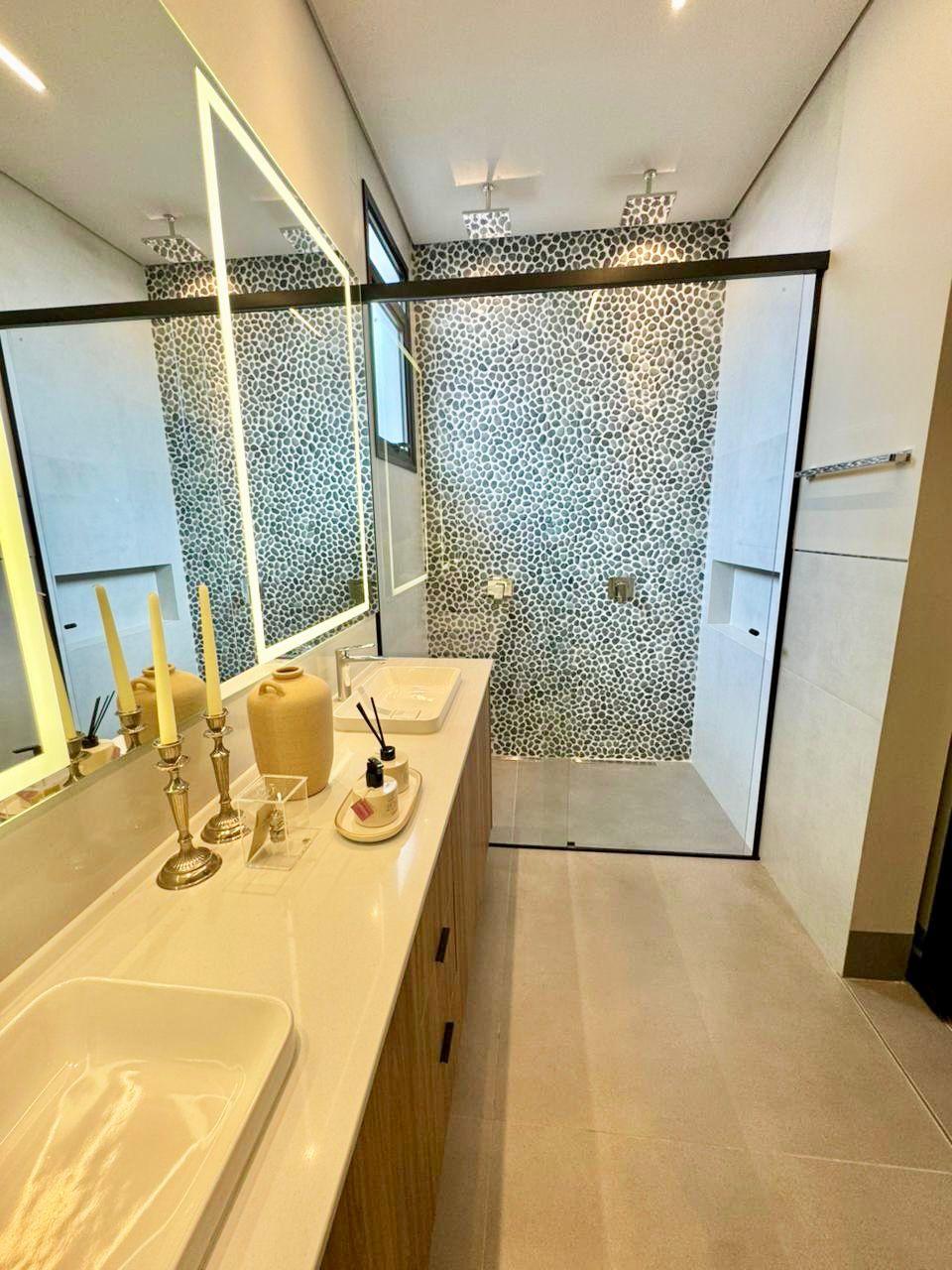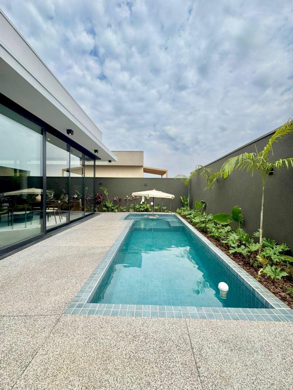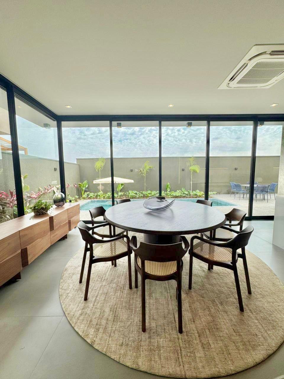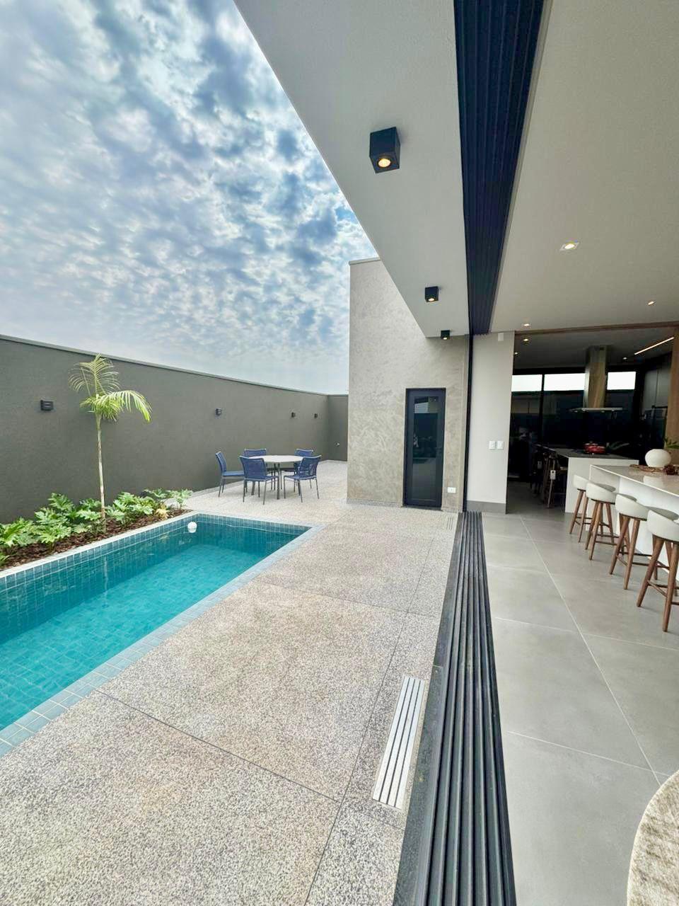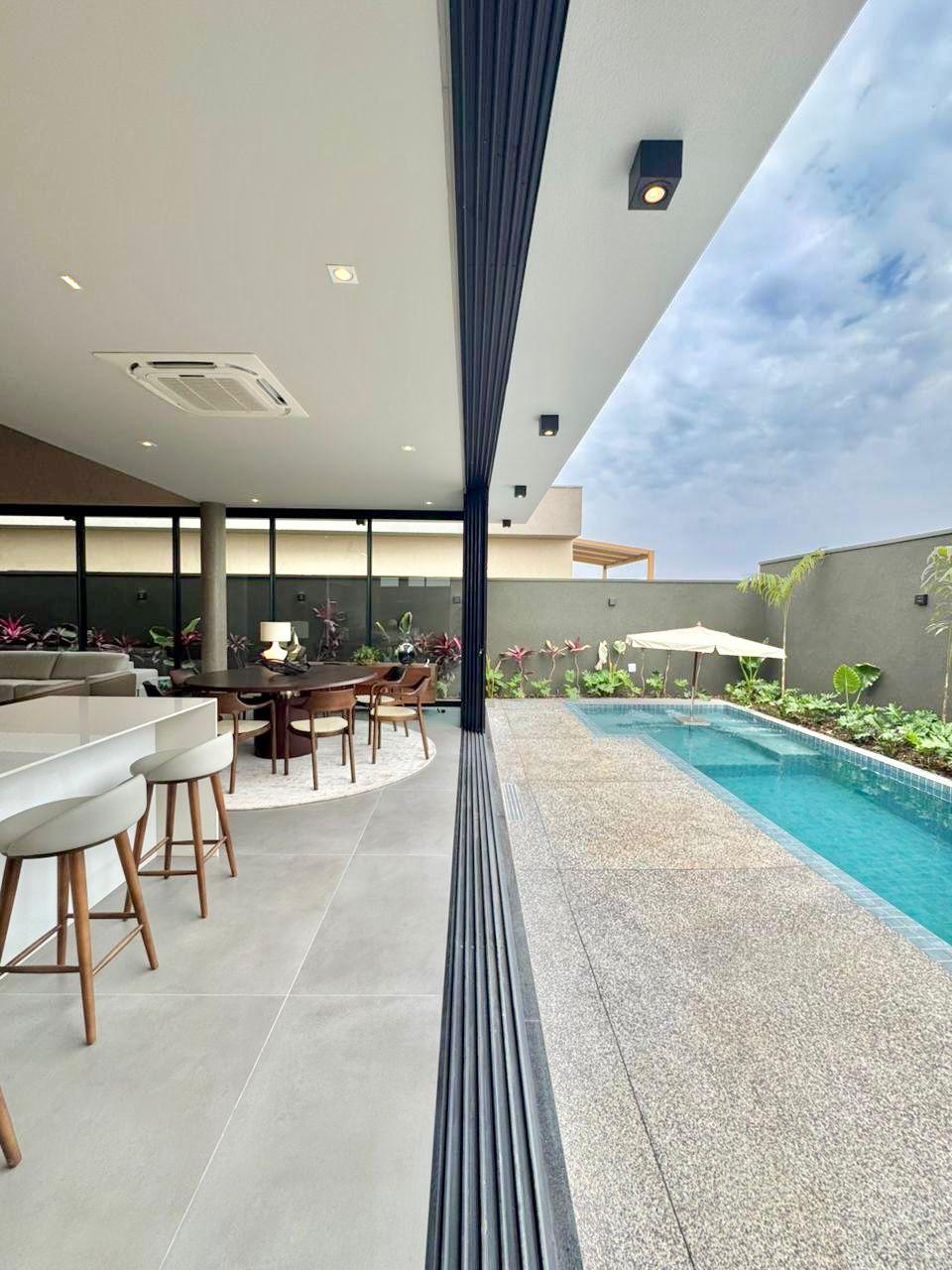 Fachada imponente que encanta; Sala de estar e jantar integrada; 4 suítes sendo 01 master com closet, todas com persianas automatizadas; Cozinha completa equipada com eletrodomésticos: forno elétrico, micro-ondas, geladeira side by side, fogão, coifa gourmet e lava-louças; Lavanderia equipada com Lavadora lava e seca de tombamento; Banheiro externo e lavabo; Escritório com móveis planejados; Área gourmet climatizada com fechamento em esquadrias de alumínio e vidro, equipada com eletrodomésticos como adega e cervejeira; Piscina aquecida, com hidromassagem, paisagismo completo.
