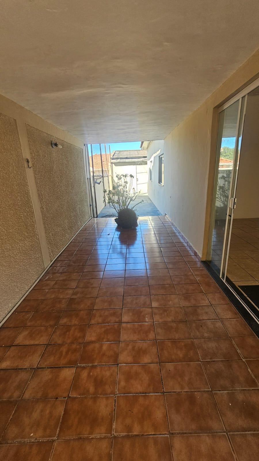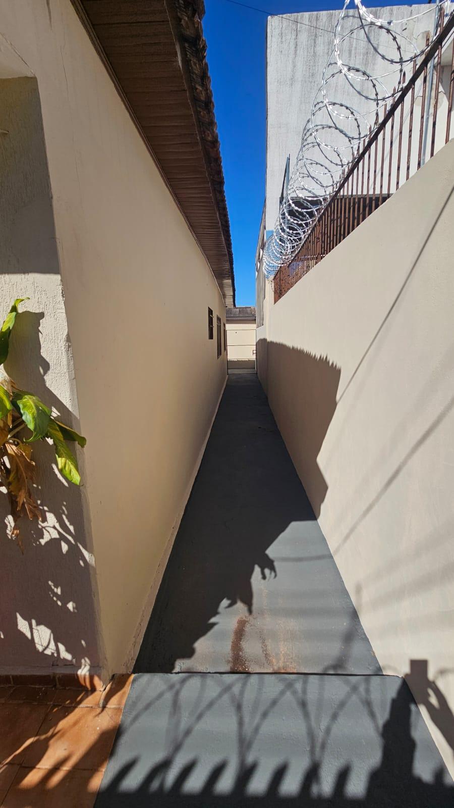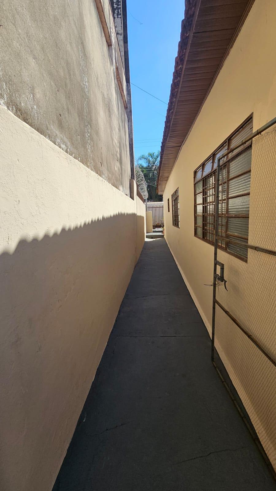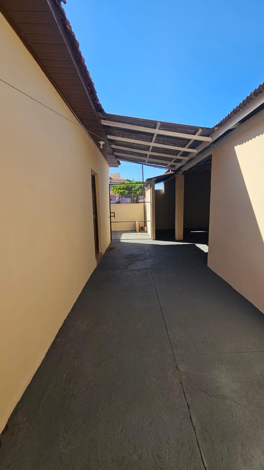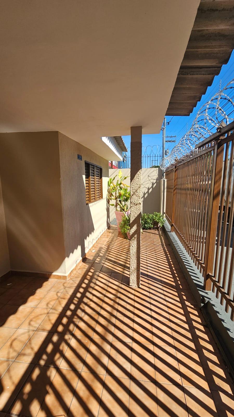 Residencia no Jardim Aviação em Presidente Prudente-SP com garagem para vários veículos, sala ampla, copa e cozinha, 03 dormitórios, banheiro social, fundos: quarto, banheiro, lavanderia coberta, quintal. Corredor lateral.